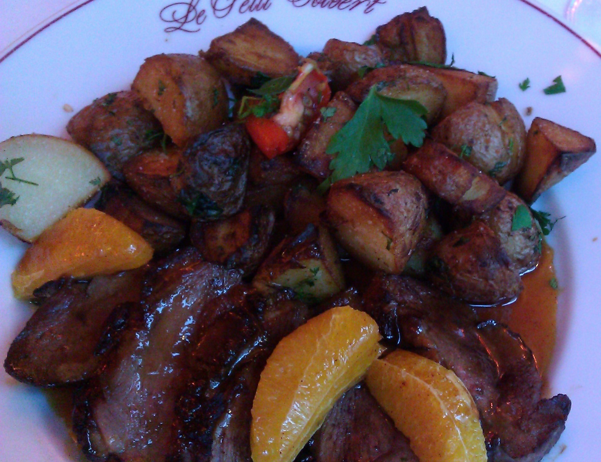 If you’ve dined at Grand Colbert and have not taking the time to unwind at Le Petit Colbert, you must treat yourself to a relaxing and carefree evening at this cozy brasseier. I decided to exercise a little more control this evening as I only ordered one course. How can one go wrong with canard??? Here’s the one dish that brought a smile to my face, pleased my palate and left me wanting to come back for more.