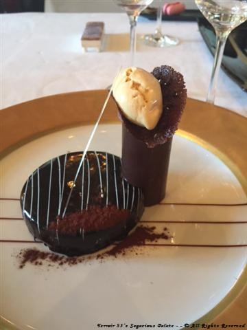 My last dining adventure at Le Grand Véfour was May 2013. Two years later I’m back and can’t wait to indulge again. At last, the hour arrived and the return to Le Grand Véfour was in full swing as Chef Guy Martin once again met us at the door and welcomed us back to what can only be summed up as – – “Ultimate.” This time we occupied the booths of Emmanuel BERL, journalist, essayist and historian and Jean COCTEAU, writer, designer, playwright, artist and filmmaker. My view of this regal dinning destination and the names of many who have dined here is one to behold, but being a connoisseur of exceptional cuisine, my anticipation for Chef Martin’s next masterpiece of flavors and textures was to much to stand. When our first course arrived and I took my first bite, I slowly drifted into that wonderful state gastronomic ecstasy. Lunch at Le Grand Véfour is the right thing to do!!!