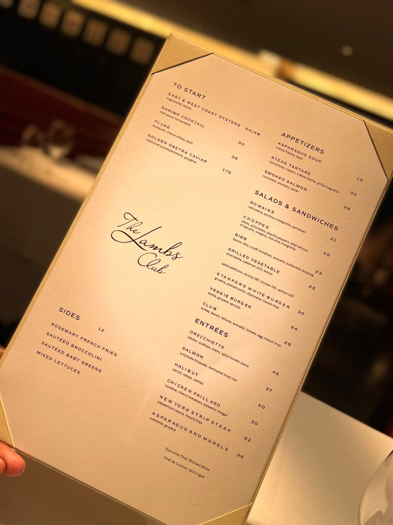 After arriving and checking in, the Lambs Club was first priority. It had all the desired trappings of that bygone, solid power lunch atmosphere where you could have a conversation and it remained yours, and exceptional cuisine only Executive Chef, Michael White could perfect and Chef de Cuisine, Jack Logue could execute. Needing to keep my palate on its game, I opted for the “veggie” burger. Having chosen an item I’d usually pass on, was one of those, shall I say, game changer moments. This in fact was a game changer, so much so if not mistaken, during my stay I had at least three veggie burgers and would have had more, but other tests of deliciousness were to be had and they were exceptional as well.