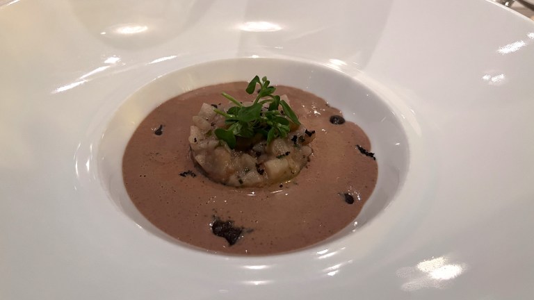 Chestnut Velouté of grilled chestnut, Steamed celery with herbs and black truffle
