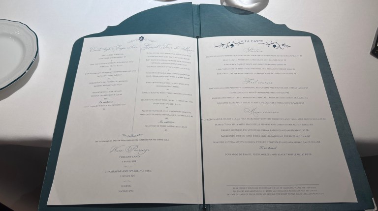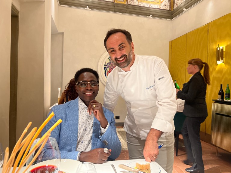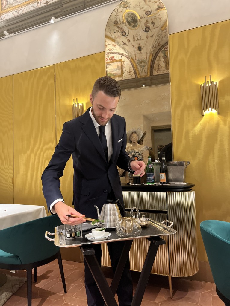 Behind the cathedral in Florence, this gourmet restaurant is housed in the Corte degli Imperatori at Palazzo Portinari, once the residence of the Salviati family. Here, chef Vito Mollica delights guests with culinary creations that focus on the sea and unusual combinations that come as a pleasant surprise. The ingredients are of the highest quality, from the fragrant home-made bread to the highly distinctive first courses, plus there’s an excellent choice of olive oils (mainly Tuscan and Umbrian). Meals are served in a dining room adorned with original frescoes depicting episodes from the Odyssey, alongside scenes of daily life in the 16C, while the gentle bubbling of a fountain provides a pleasant background soundtrack. The exceptionally professional service enhance this sublime experience that combines artistry and gastronomy.”